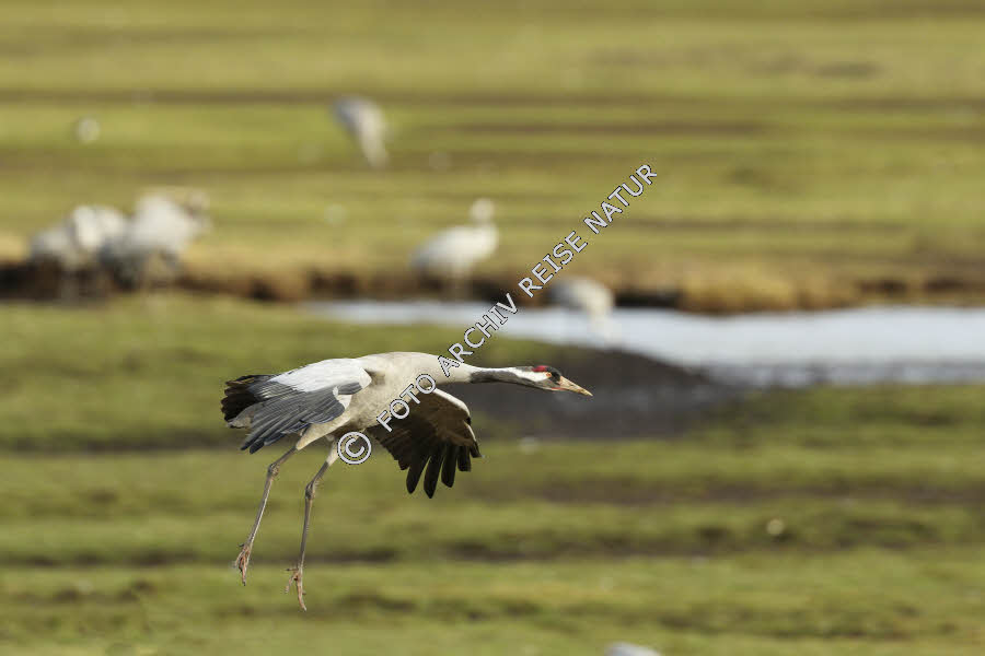 Kranich im Landeanflug am Hornborgasjön bei Bjurum