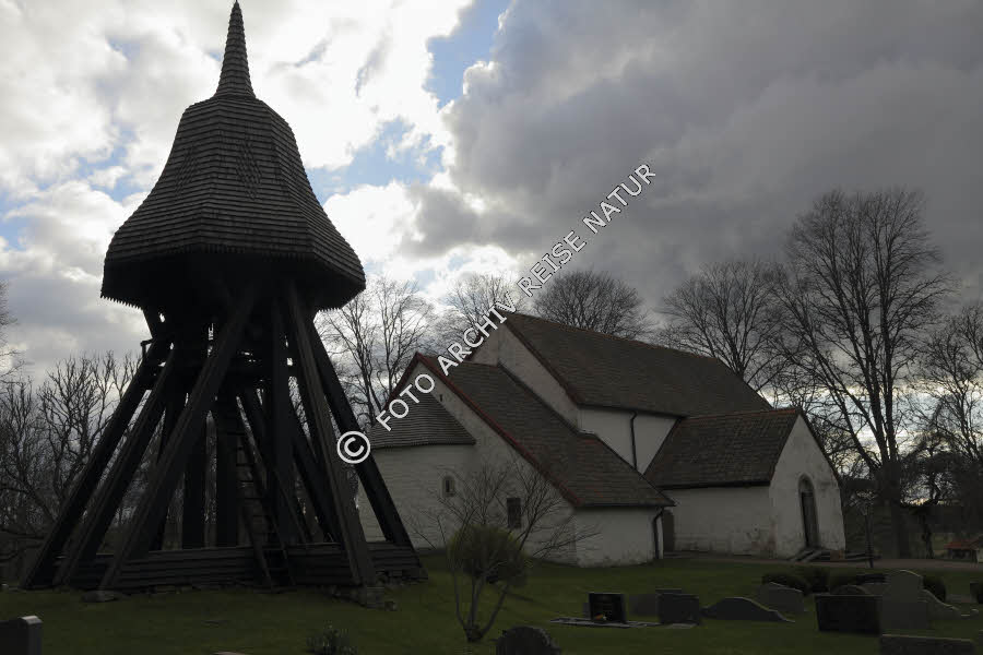 Bauwerk, Falköping, Gebäude, Glockenturm, Gökhem, Holzturm, Kirche, Kultur, Kulturdenkmal, Kulturstätte, Sakralbau, Schweden, Steinkirche, Turm, Västra Götlands län, historisch,