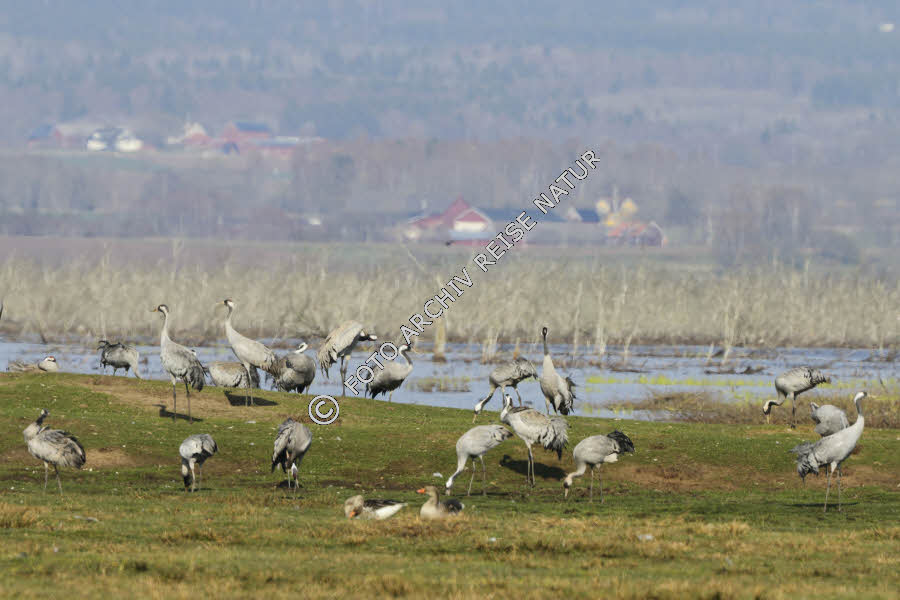 Rastende Kraniche am Hornborgasjön bei Bjurum