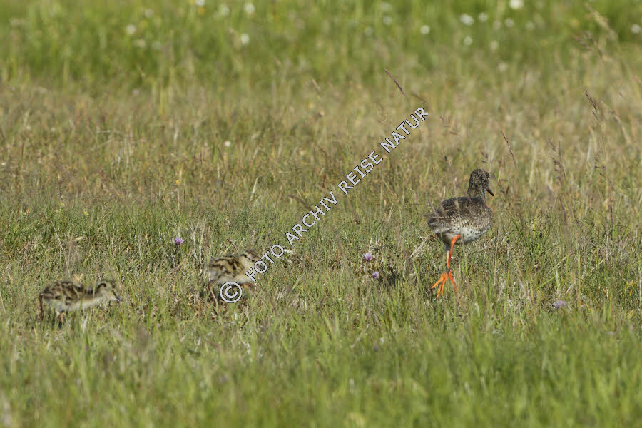 Rotschenkel mit Küken im Ottenby Naturreservat