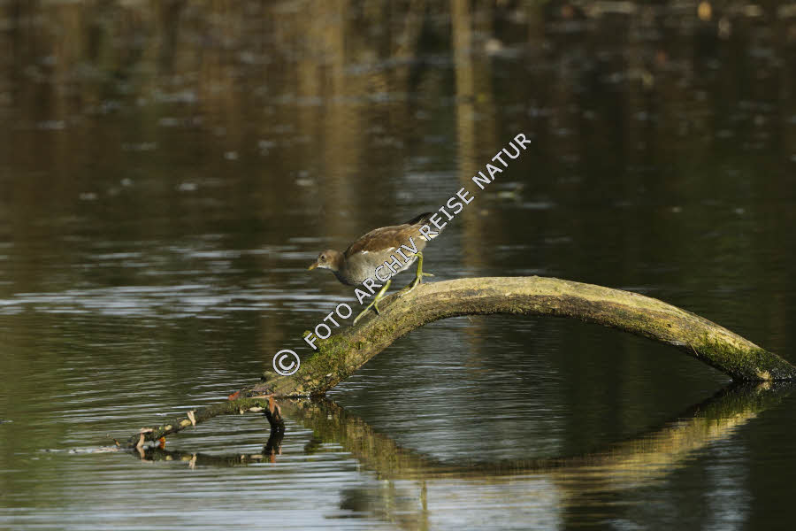 Teichhuhn auf Totholz in der Bolle di Magadino