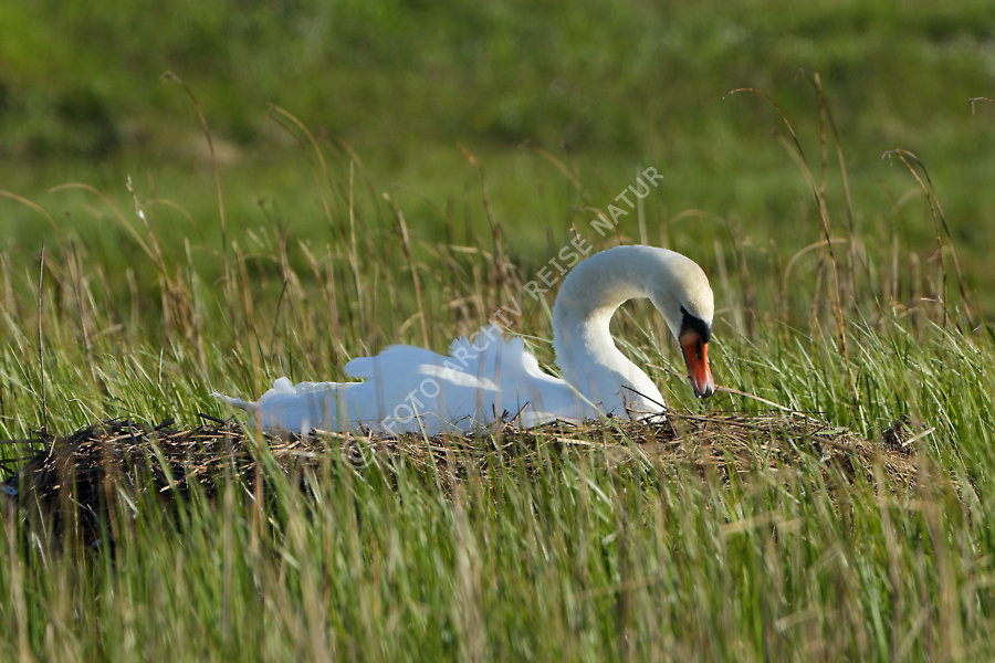 Aktivität, Brüten, Entenvögel, Ereignis, Fauna, Flora, Gras, Grasland, Höckerschwan, Cygnus olor, Naturschutzgebiet, Nest, Ort, Ottenby, Schweden, Tierbau, Tätigkeit, Vogel, Öland,