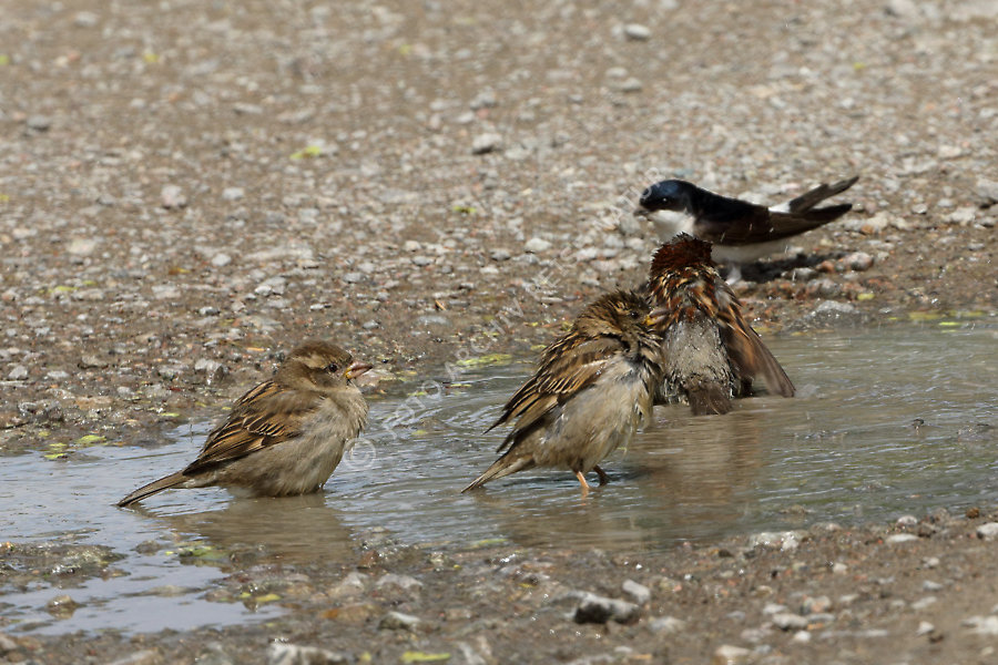 Fauna, Gewässer, Haussperling, Passer domesticus, Landschaft, Mehlschwalbe, Delichon urbicum, Naturschutzgebiet, Ort, Ottenby, Pfütze, Schwalben, Sperlinge, Vogel,