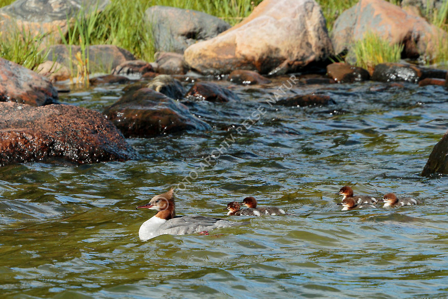 Entenvögel, Fauna, Gewässer, Gänsesäger, Mergus merganser, Jungtier, Jungvogel, Kalmarsund, Küken, Landschaft, Meer, Ostsee, Vogel,