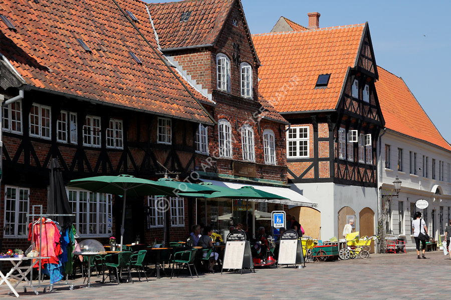 Bauwerk, Dänemark, Fachwerk, Gaststätte, Gegenstand, Jütland, Kultur, Mauer, Ort, Restaurant, Ribe, Schirm, Sonnenschirm, Straßenrestaurant, historisch,