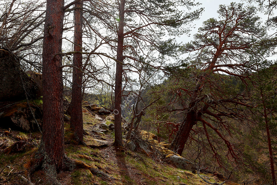 Bauwerk, Bergpfad, Bergwald, Gjøra, Kiefernwald, Landschaft, Møre og Romsdal, Nadelwald, Norwegen, Pfad, Verkehrsweg, Wald, Wanderweg, Weg, Åmotan, Åmotan Jenstadhaugen,
