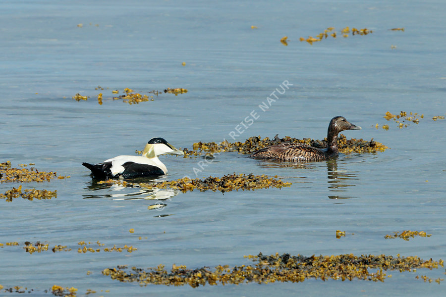 Eiderente, Somateria mollissima, Entenvögel, Fauna, Fjord, Frosta, Gewässer, Gruppe, Landschaft, Nord-Trøndelag, Norwegen, Paar, Pärchen, Trondheimsfjorden, Vogel,
