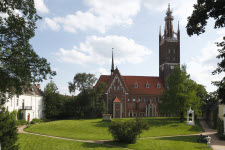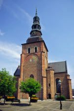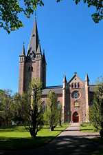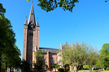 Die in Form einer Basilika errichtete Holzkirche von Habo mit freistehendem Glockenturm