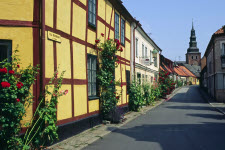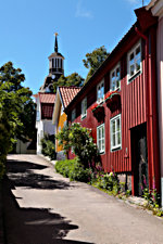 Altstadtgasse in Västervik mit schmucken Holzhäusern