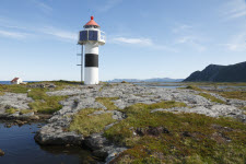 Neset an der Mündung des Tronheimfords mit Leuchtturm Kjeungskjær