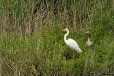 Silberreiher und Graugans im Naturschutzgebiet Garstad
