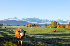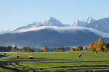 Herbstliches Alpenvorland bei Brunnen, Blick auf die Allgäuer Alpen mit Alpspitz