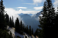 Nebelschwaden in den schneegepuderten Allgäuer Alpen mit Alpspitz