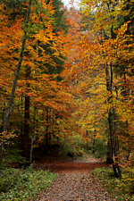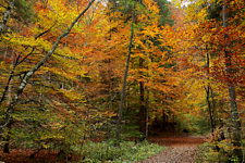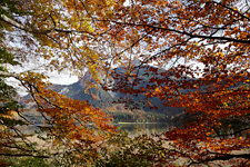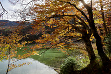 Buchen im Herbstlaub am Ufer des Alpsees im Allgäu