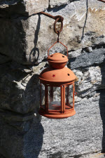Kerzenlaterne an einer Hauswand auf der Alpe Cordonico