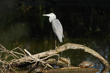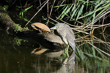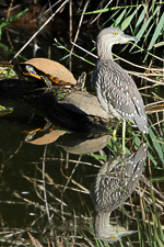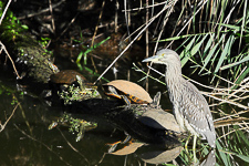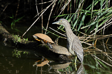 Junger Nachtreiher und Europäische Sumpfschildkröte