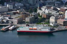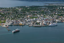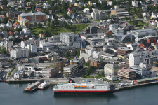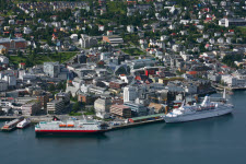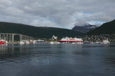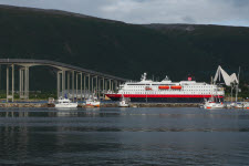 Hurtigruten- und Kreuzfahrtschiff im Hafen von Tromsø