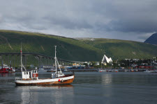 Fischkutter auf dem Tromsøsund / Eismeer-Kathedrale