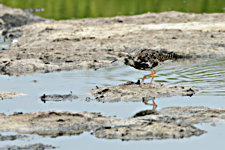 Pfuhlschnepfe und Alpenstrandläufer im Schlick