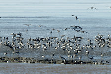 Trupp Weißwangengänse rasten im Schlick des Dollarts